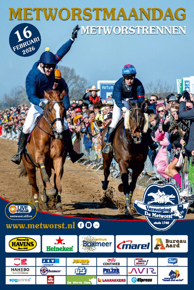 De afgelopen maanden zijn alle ruiters druk geweest met de voorbereiding om hun Koningsdroom aanstaande maandag te verwezenlijken. Dit jaar zijn er geen debutanten en strijden er ‘slechts’ 16 ruiters om de Koningstitel. Met maar liefst 11 volbloed- en 5 halfbloedpaarden, die 100 meter voorsprong krijgen, zijn er voldoende ingrediënten die zullen leiden tot een spannende, verrassende en vooral mooie Metworstrennen. De loting van de acht ritten in de voorronde zal dit jaar veelbepalend zijn om te weten wie zichzelf na drie rondes ‘Koning van de Metworst’ mag noemen.